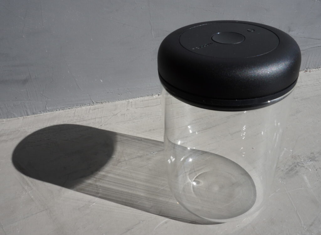 簡単な操作でキャニスター内の空気を抜くことができる真空キャニスターです。